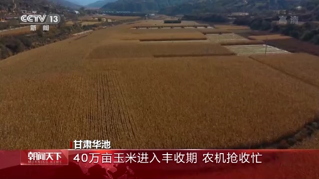 眼下,甘肃华池县的40万亩玉米进入丰收期,玉米簇拥成一片金色的海洋。在玉米规模化种植基地里,联合收割机来回穿梭,金黄的玉米棒被装入了运输车。收割、收棒、粉碎秸秆,田地里一派繁忙景象。