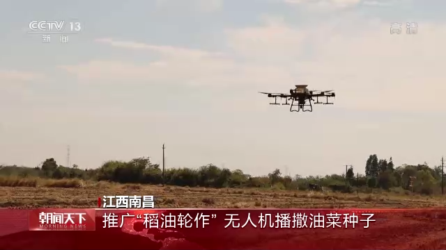 江西南昌:推广“稻油轮作” 无人机播撒油菜种子
