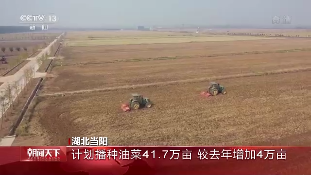 在推进秋收的同时,秋冬种也同步进行。长江流域是我国冬油菜最集中的产区,面积和产量均占全国的85%左右。在湖北当阳,今年全市油菜计划播种面积41.7万亩,比去年增加4万亩。政府统一采购种子化肥,并同时装入精播机,播种施肥一次完成。