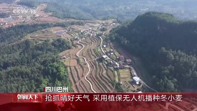 这两天,四川巴中巴州区抢抓晴好天气,采用植保无人机抢播冬小麦。巴州区属于典型丘陵山区,大型现代化机械生产作业受限。使用无人机播种,不受地形限制,可以实现精准定位,精量化播种。